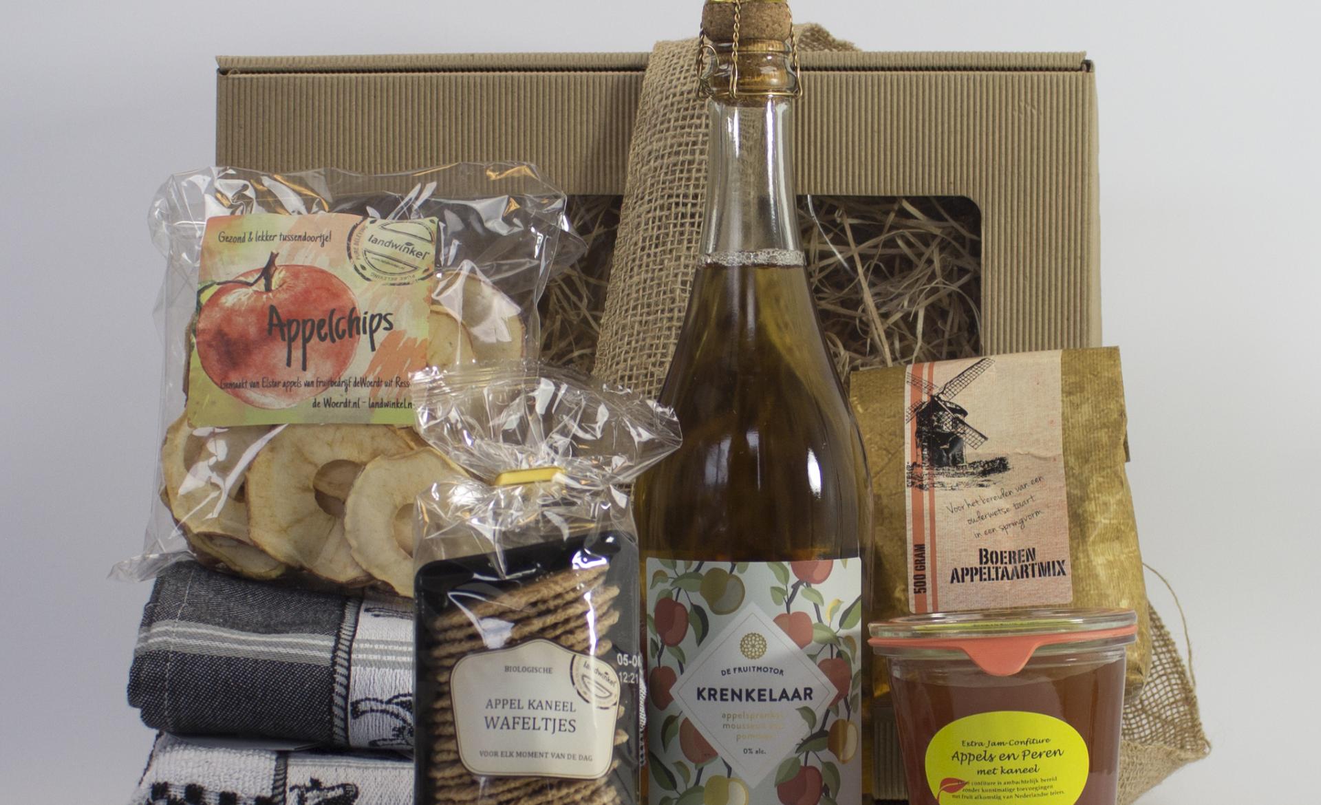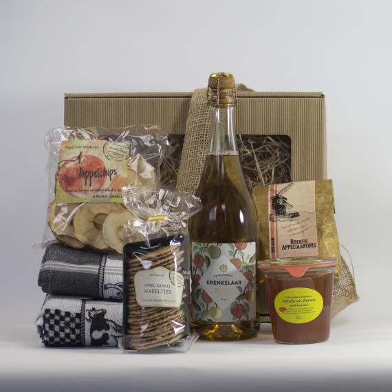 Een super leuk pakket met afwisselende producten. Ken jij de appelchips van Fruitbedrijf de Woerdt al of de krokante Landwinkel appel-kaneel wafeltjes? De mooie set keukentextiel is een sieraad in ieders keuken!